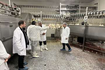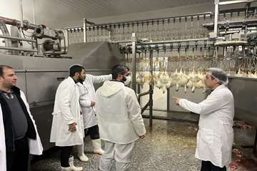 رجبی رئیس شبکه دامپزشکی ارومیه در یک بازدید سرزده از کشتارگاه طیور پلیکان بازدید نمود