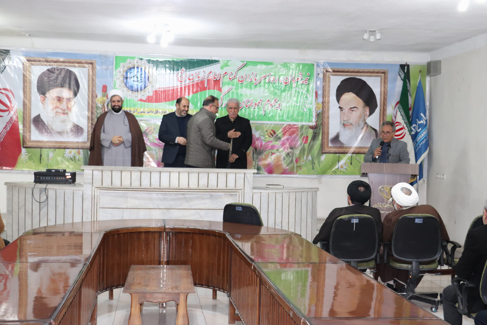 به گزارش روابط عمومی اداره کل دامپزشکی استان آذربایجان غربی،به مناسبت گرامیداشت  نیمه شعبان ،سالروز میلاد منجی وپرچمدار عدالت وآزادگی حضرت مهدی (عج ) و هفته سربازان گمنام با حضور مدیر کل دامپزشکی استان، مسئول دفتر نمایندگی ولی فقیه ، معاونین ، روسای ادارات و کارکنان در سالن اجتماعات اداره کل برگزار گردید.