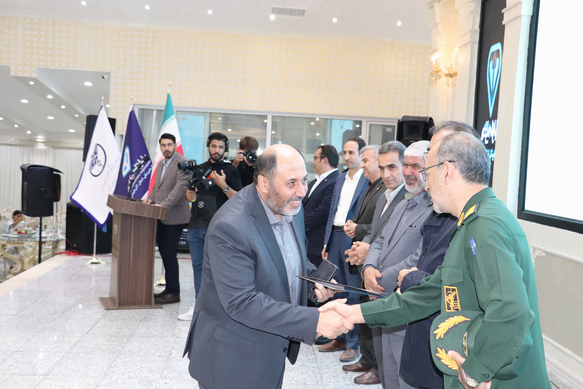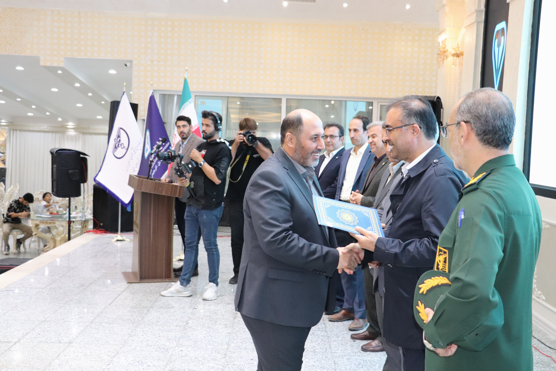 لوح تقدیری از طرف سرتیپ دوم پاسدار محمد حسن رجبی فرمانده سپاه شهدا استان آذربایجان غربی به سید امید خلیل زاده مدیرکل اهدا گردید