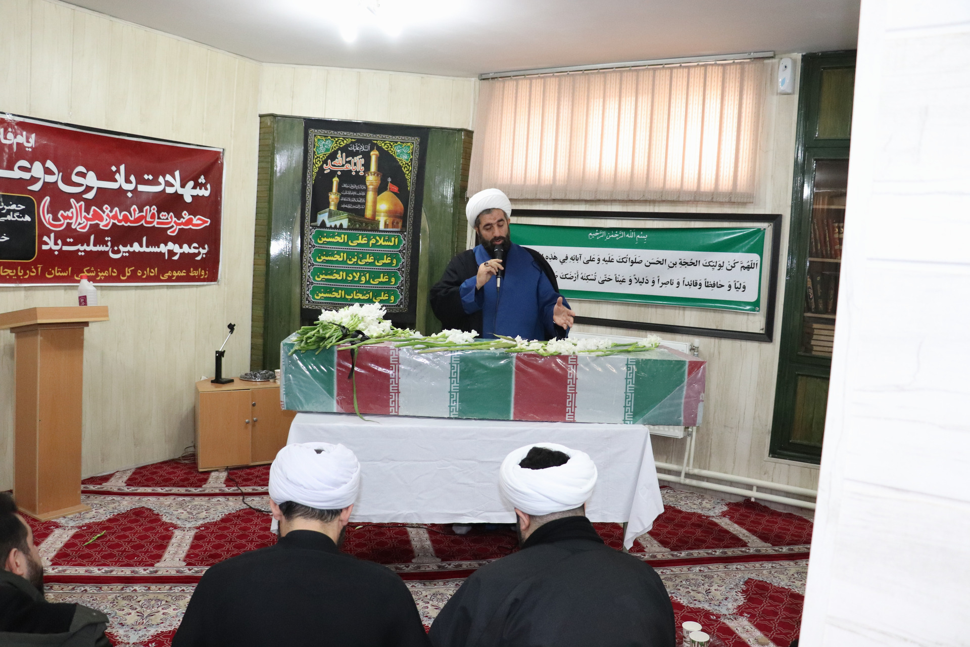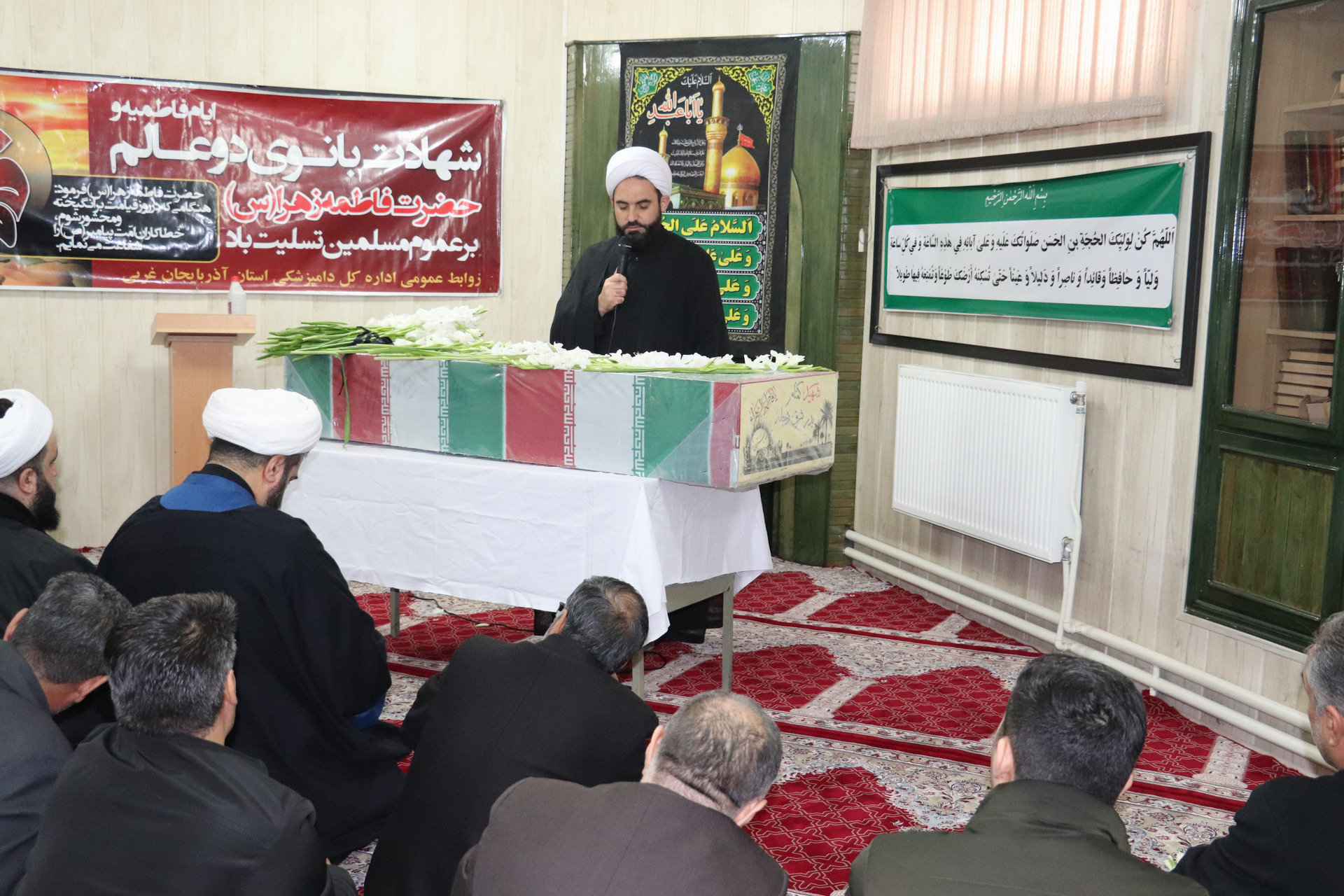به گزارش روابط عمومی اداره کل دامپزشکی استان آذربایجان غربی، در سالروز شهادت بانوی دو عالم حضرت فاطمه زهرا (س)  مراسم استقبال از پیکر شهید گمنام با حضور معاونین ، مسئول دفتر نمایندگی ولی فقیه سازمان جهاد کشاورزی، مسئول دفتر نمایندگی ولی فقیه دامپرشکی استان ، پرسنل در اداره کل دامپزشکی برگزار گردید .
